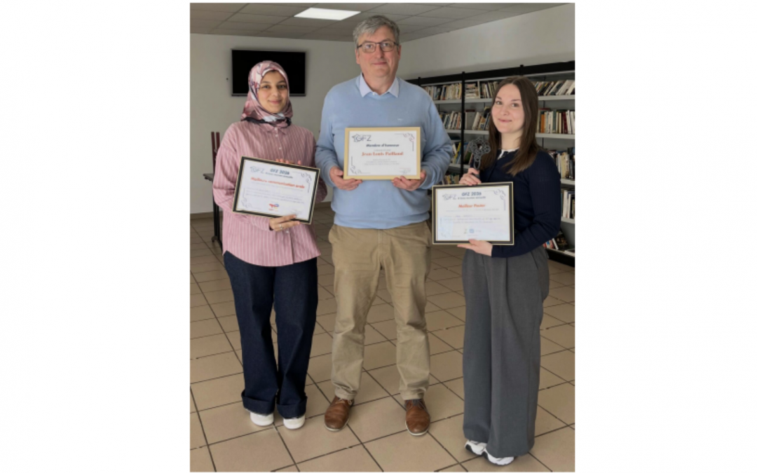 El Batoul ZERIFI (2ième année de thèse) a reçu le prix de la meilleure présentation orale (« “Cation-Exchanged Ferrierite Zeolite as a Promising Adsorbent for Radon : A Combined Computational and Experimental Study” et Clara MONGELLI (1ère année de thèse) a reçu le prix du meilleur poster « Synthesis and characterization of MFI-type zeolites containing Al and/or Ti heteroatoms into the framework ».